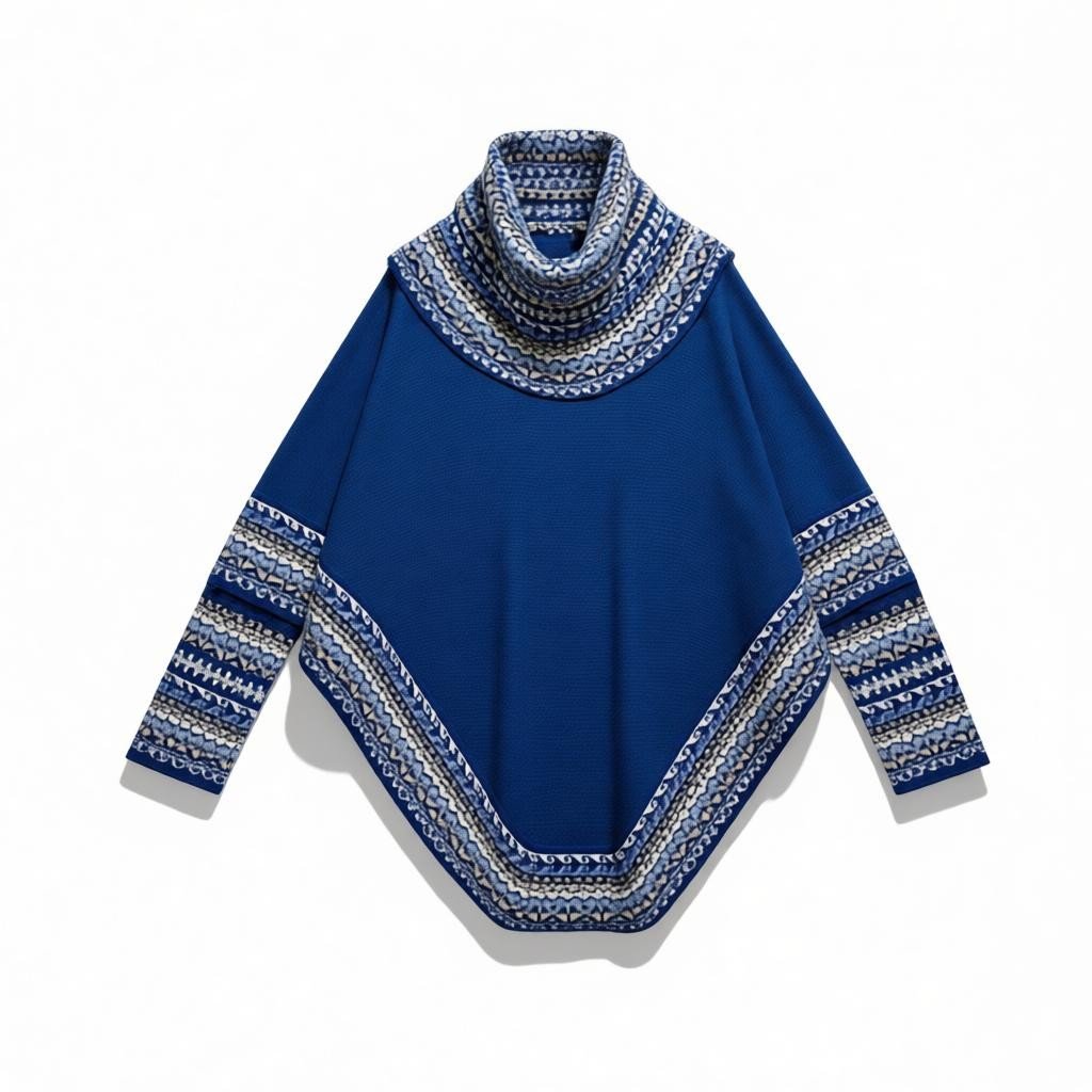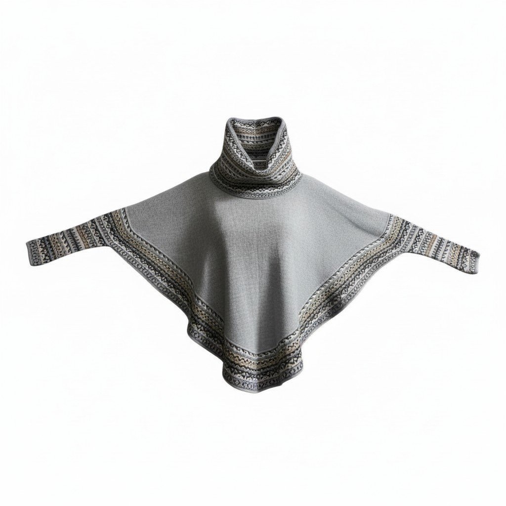 Effortless Layering: The expansive batwing design allows the poncho to layer comfortably over sweaters and tailored pieces, making it an essential, versatile cape for transitional seasons or cold interiors.