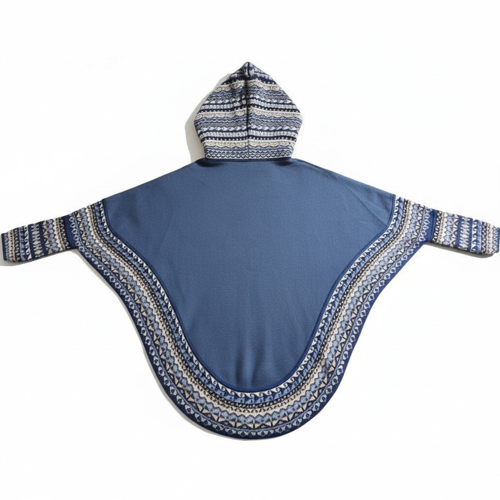 Artisan Detail: The contrasting geometric pattern around the edges introduces an element of sophisticated heritage, ensuring the poncho is instantly recognized as a piece of curated luxury.